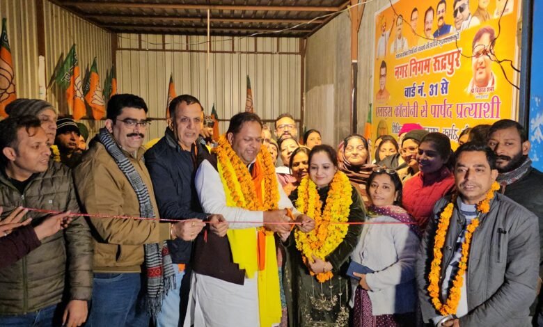 भाजपा मेयर प्रत्याशी विकास शर्मा ने नगर निगम क्षेत्र वार्ड नंबर 31 में पार्षद प्रत्याशी पूजा मुंजाल के कार्यालय का फीता काटकर उदघाटन किया। इस दौरान उन्होंने वहां मौजूद लोगों से आगामी 23 जनवरी को वार्ड में कमल खिलाने का आहवान किया।