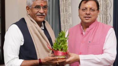 केंद्रीय संस्कृति एवं पर्यटन मंत्री गजेंद्र सिंह शेखावत ने मुख्यमंत्री आवास में मुख्यमंत्री पुष्कर सिंह धामी से शिष्टाचार भेंट की…