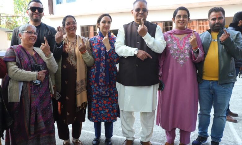 देहरादून, 23 जनवरी। कैबिनेट मंत्री गणेश जोशी ने आज निकाय चुनाव के दृष्टिगत लोकतंत्र के महापर्व मतदान दिवसर के अवसर पर मसूरी विधानसभा क्षेत्र के अंतर्गत देहरादून नगर निगम क्षेत्र के वार्ड नंबर 11 (विजय कॉलोनी ) बूथ संख्या 77, गुरुराम राय पब्लिक स्कूल कालीदास रोड़ में अपनी धर्मपत्नी निर्मला जोशी एवं परिवार के सदस्यों के साथ अपने मताधिकार का प्रयोग कर लोगों को प्रेरित किया।