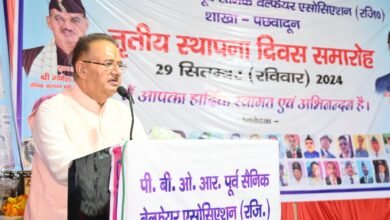 विकास नगर में पूर्व सैनिक वेलफेयर एसोसिएशन के तृतीय स्थापना दिवस समारोह कार्यक्रम को संबोधित करते सैनिक कल्याण मंत्री गणेश…