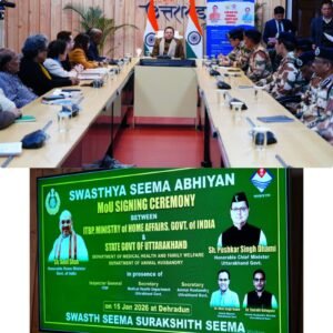 मुख्यमंत्री श्री पुष्कर सिंह धामी की उपस्थिति में आज मुख्यमंत्री आवास में उत्तराखंड शासन एवं भारत–तिब्बत सीमा पुलिस (आईटीबीपी) के मध्य स्वस्थ सीमा अभियान के अंतर्गत एक महत्वपूर्ण समझौता ज्ञापन (MoU) पर हस्ताक्षर किए गए। इस अवसर पर स्वास्थ्य मंत्री डॉ. धन सिंह रावत एवं कैबिनेट मंत्री श्री सौरभ बहुगुणा भी उपस्थित रहे।