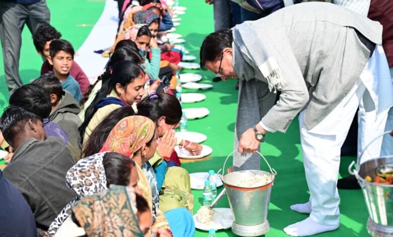 मुख्यमंत्री धामी ने श्रद्धालुओं को स्वयं प्रसाद वितरित कर और उनके साथ बैठकर खिचड़ी प्रसाद ग्रहण कर समरसता का उदाहरण प्रस्तुत किया