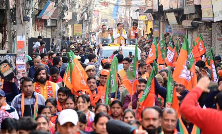 रोडशो में बड़ी संख्या में सीएम धामी के स्वागत में उमड़े लोग