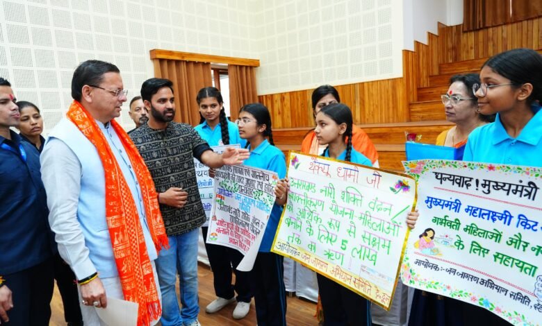 जन जागरण अभियान समिति के तत्वाधान में विभिन्न विद्यालयों की छात्राओं ने राज्य सरकार द्वारा संचालित 15 उत्कृष्ट योजनाओं पर आधारित आकर्षक पोस्टर तैयार कर मुख्यमंत्री धामी के समक्ष प्रस्तुत किए