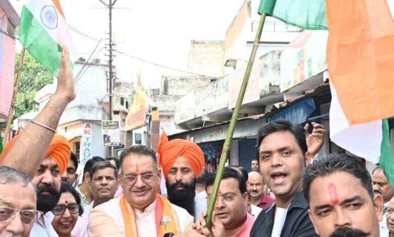 काशीपुर में भाजयुमो द्वारा आयोजित तिरंगा यात्रा रैली में स्कूटी चलाकर यात्रा में प्रतिभाग करते कैबिनेट मंत्री गणेश जोशी