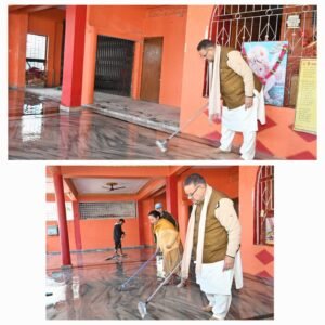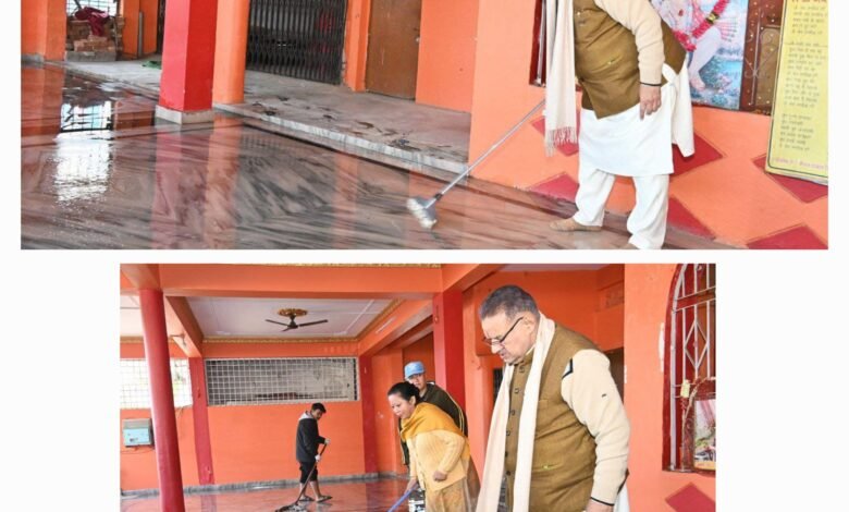 मंदिरों में स्वच्छता अभियान के तहत मंदिर परिसर में साफ-सफाई कर कैबिनेट मंत्री गणेश जोशी ने किया श्रमदान