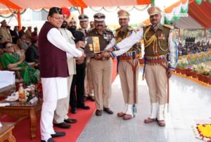 परेड ग्राउंड में राज्यपाल एवं मुख्यमंत्री ने सराहनीय सेवाओं के लिए पुलिस अधिकारियों को सम्मानित किया