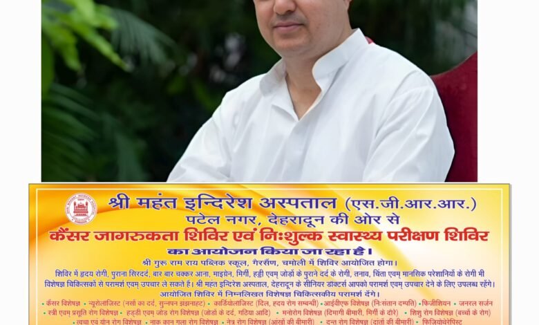 श्री गुरु राम राय एजुकेशन मिशन/ विश्वविद्यालय / मेडिकल कॉलेज और उसके अंतर्गत संचालित श्री महंत इन्दिरेश अस्पताल, देहरादून द्वारा — सरकार के सहयोगी संस्थान के रूप में — गैरसैंण में निःशुल्क स्वास्थ्य एवं कैंसर जागरूकता शिविर का आयोजन किया जा रहा है।