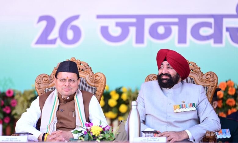 गणतंत्र दिवस के अवसर पर राज्यपाल लेफ्टिनेंट जनरल गुरमीत सिंह (से नि) ने सोमवार को परेड ग्राउंड में आयोजित गणतंत्र दिवस के मुख्य समारोह में राष्ट्रीय ध्वज फहराया और भव्य परेड की सलामी ली। कार्यक्रम में राज्यपाल लेफ्टिनेंट जनरल गुरमीत सिंह (से नि) और मुख्यमंत्री श्री पुष्कर सिंह धामी द्वारा उत्कृष्ट प्रदर्शन करने वाले पुलिस अधिकारियों को पदक अलंकरण कर सम्मानित किया गया साथ विभिन्न अधिकारियों को भी उनकी सराहनीय सेवाओं के लिए सम्मानित किया।