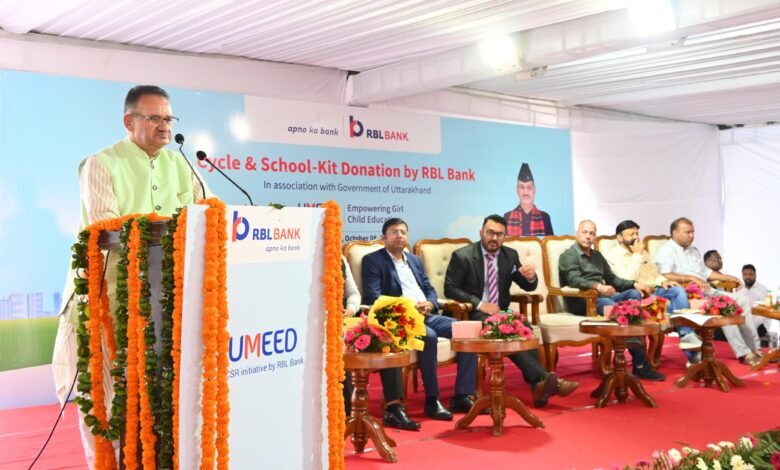 कैबिनेट मंत्री गणेश जोशी ने आज किशनपुर स्थित राजकीय इंटर कॉलेज में “उम्मीद” एक पहल के अन्तर्गत आर.बी.एल. बैंक द्वारा आयोजित साइकिल वितरण एवं स्कूल कीट वितरण कार्यक्रम में बतौर मुख्य अतिथि प्रतिभाग किया। इस अवसर पर कैबिनेट मंत्री गणेश जोशी ने सी.एस.आर के तहत 18 विभिन्न राजकीय विद्यालयों में अध्ययनरत ग्रामीण एवं निम्न आय वर्ग की 300 स्कूली छात्राओं को साइकिल एवं स्कूल कीट वितरित की। इस अवसर पर मंत्री जोशी ने बालिकाओं को प्रोत्साहित करते हुए कहा कि शिक्षा ही सशक्तिकरण का सबसे बड़ा माध्यम है और सरकार का लक्ष्य है कि कोई भी बेटी शिक्षा से वंचित न रहे।