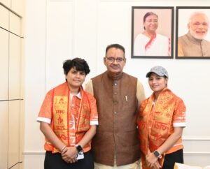 कैबिनेट मंत्री गणेश जोशी ने भारतीय महिला फ्लोरबॉल टीम की मैनेजर सरस्वती भण्डारी और कप्तान संगीता राठी को किया सम्मानित।