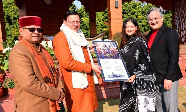 आ रहे भगवान है की रचयिता श्रीमती प्राची ने आज मुख्यमंत्री श्री पुष्कर सिंह धामी को अपनी काव्य रचना की प्रति भेंट की..