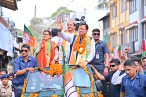 रानीखेत, अल्मोड़ा में आयोजित रोड शो में सम्मिलित होकर मुख्यमंत्री धामी ने जनता से भाजपा प्रत्याशी अजय टम्टा को भारी मतों से विजयी बनाने की अपील की