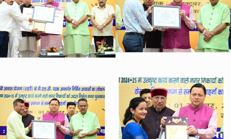 मुख्यमंत्री ने रुद्रपुर नगर निगम को प्रथम, पिथौरागढ़ नगर निगम को द्वितीय तथा कोटद्वार नगर निगम को तृतीय अटल निर्मल नगर पुरस्कार 2025 से सम्मानित किया