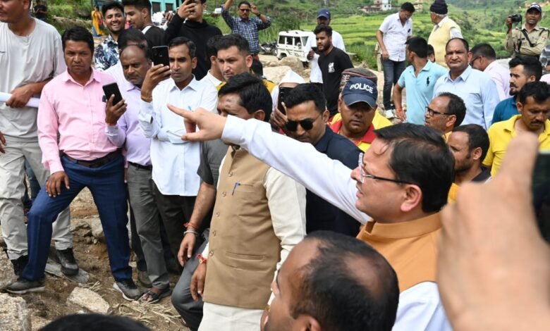 मुख्यमंत्री धामी ने घुत्तू-पंजा-देवलिंग टिहरी पहुंचकर आपदा प्रभावित क्षेत्र में चल रहे राहत एवं बचाव कार्यों का स्थलीय निरीक्षण किया