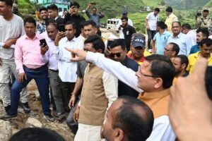 मुख्यमंत्री धामी ने घुत्तू-पंजा-देवलिंग टिहरी पहुंचकर आपदा प्रभावित क्षेत्र में चल रहे राहत एवं बचाव कार्यों का स्थलीय निरीक्षण किया