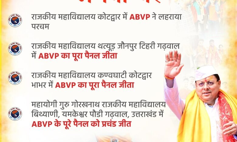 अखिल भारतीय विद्यार्थी परिषद (ABVP) को मिली बड़ी और ऐतिहासिक जीत ने स्पष्ट कर दिया कि प्रदेश के कॉलेज और विश्वविद्यालयों के छात्र, खासकर GenZ, भाजपा की विचारधारा और मुख्यमंत्री पुष्कर सिंह धामी के नेतृत्व वाली सरकार की नीतियों पर भरोसा रखते हैं। चुनाव परिणाम यह भी बताते हैं कि छात्रों के बीच सरकार के प्रति विश्वास की स्थिति विपक्ष के आरोपों से कहीं अलग है।