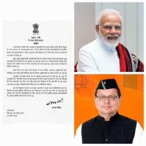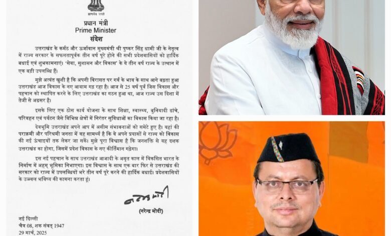 प्रधानमंत्री ने पत्र लिखकर मुख्यमंत्री धामी को कर्मठ और ऊर्जावान बताते हुए कहा ये तीन साल राज्य के उत्थान में बङी उपलब्धि