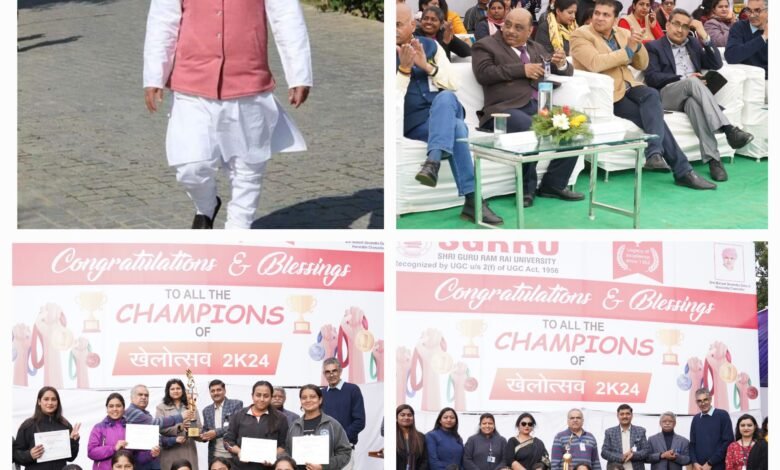 श्री गुरु राम राय विश्वविद्यालय (एसजीआरआरयू) की वार्षिक खेलकूद प्रतियोगिता खेलोत्सव-2024 का रंगारंग प्रस्तुतियों के साथ शनिवार को समापन हो गया। प्रतियोगिता के समापन अवसर पर छात्र-छात्राओं ने मनमोहक प्रस्तुतियां दीं।